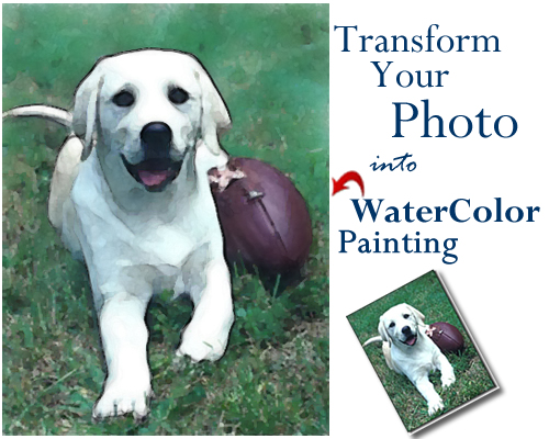 Your photo into a fancy water color paintings printed on museum quality canvas.